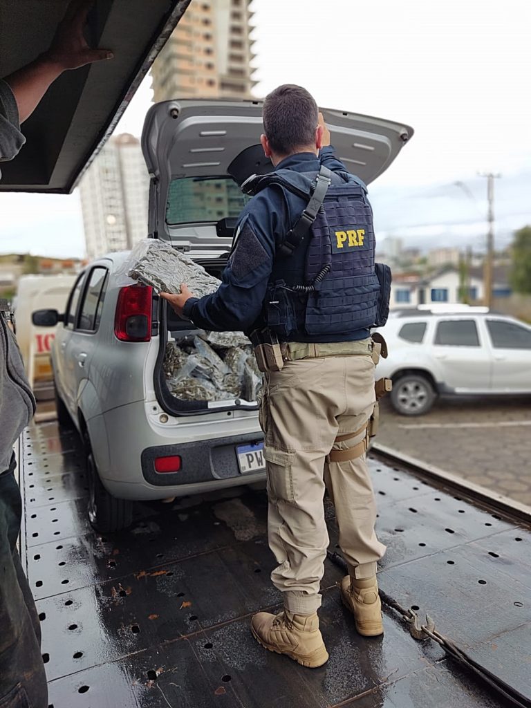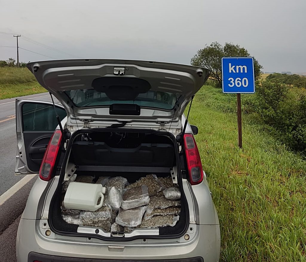 Automóvel Fiat Uno, que foi abordado pelos policiais em Guarapuava, transportava aproximadamente 35kg de entorpecente