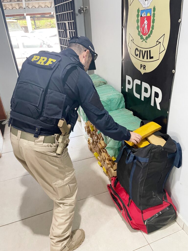 PRF apreendeu pouco mais de 256 quilos de maconha na BR-277, em Irati. Foto: PRF/Divulgação