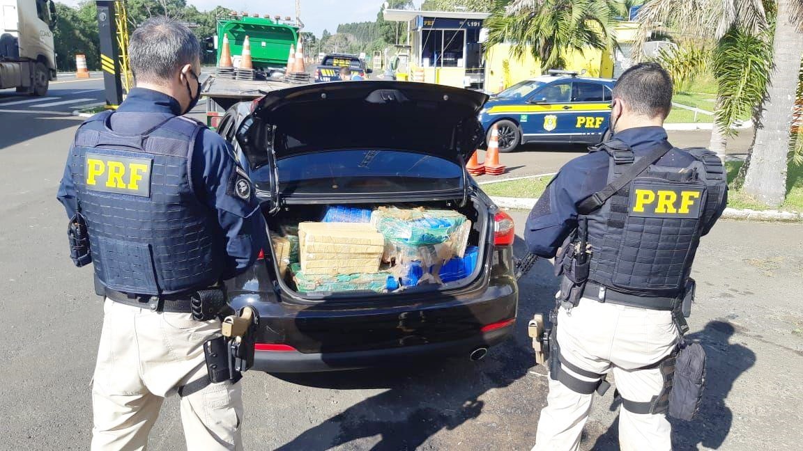 | PRF apreendeu drogas em veículo Kia Cerato, que havia sido roubado em Santa Catarina. Foto: PRF/Divulgação |