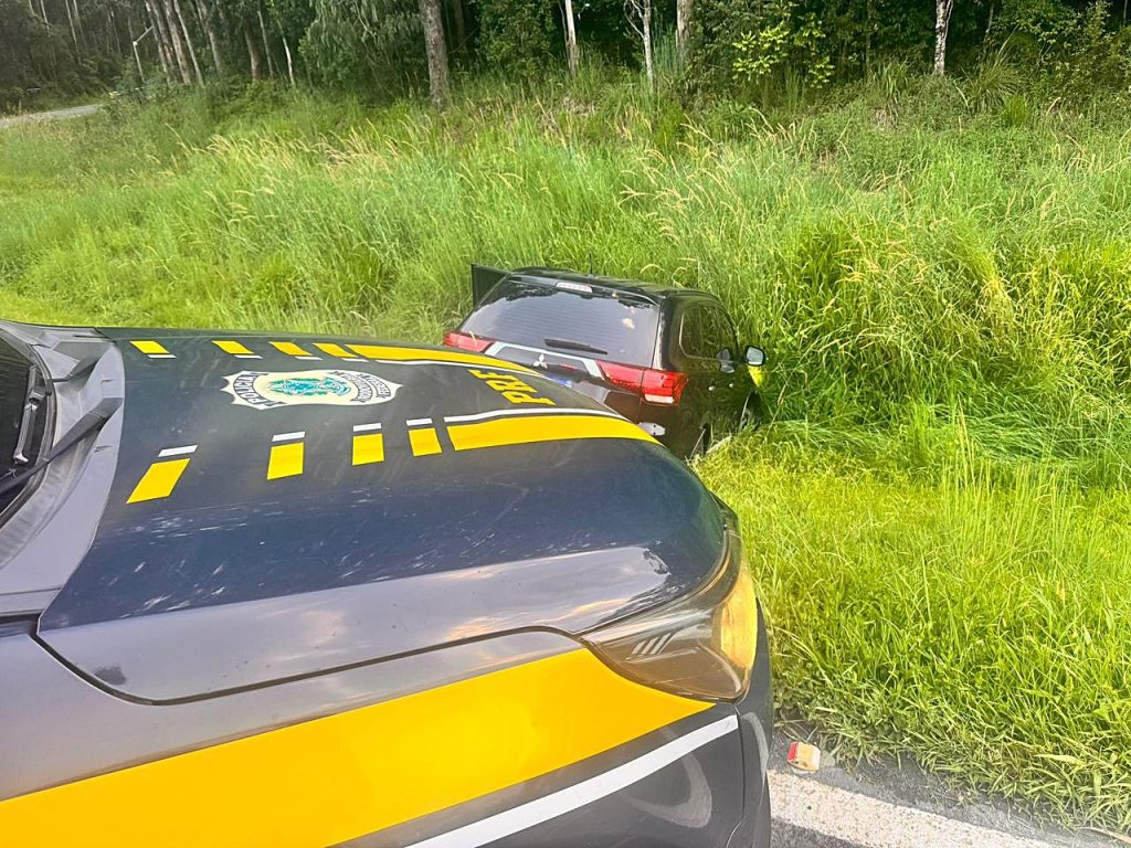 Motorista fugiu por cerca de 27 quilômetros, abandonou veículo roubado após colisão e escapou a pé pela mata/Paulo Sava, com informações da Polícia Rodoviária Federal