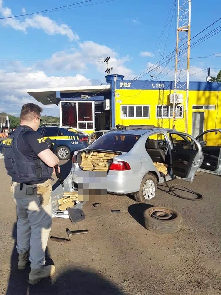 A equipe deu ordem de parada para o condutor de um Voyage, que seguia sentido Curitiba. O motorista fugiu, mas foi interceptado pelos policiais. Durante a abordagem, os dois ocupantes do carro tentaram fugir a pé. Porém, eles foram capturados. Dentro do automóvel foram encontrados 503 quilos e 500 gramas de maconha. Os entorpecentes estão avaliados em mais de R$ 500 mil. Conforme a PRF, o Voyage havia sido roubado em Brasília/DF e estava com placas falsas de Cascavel.