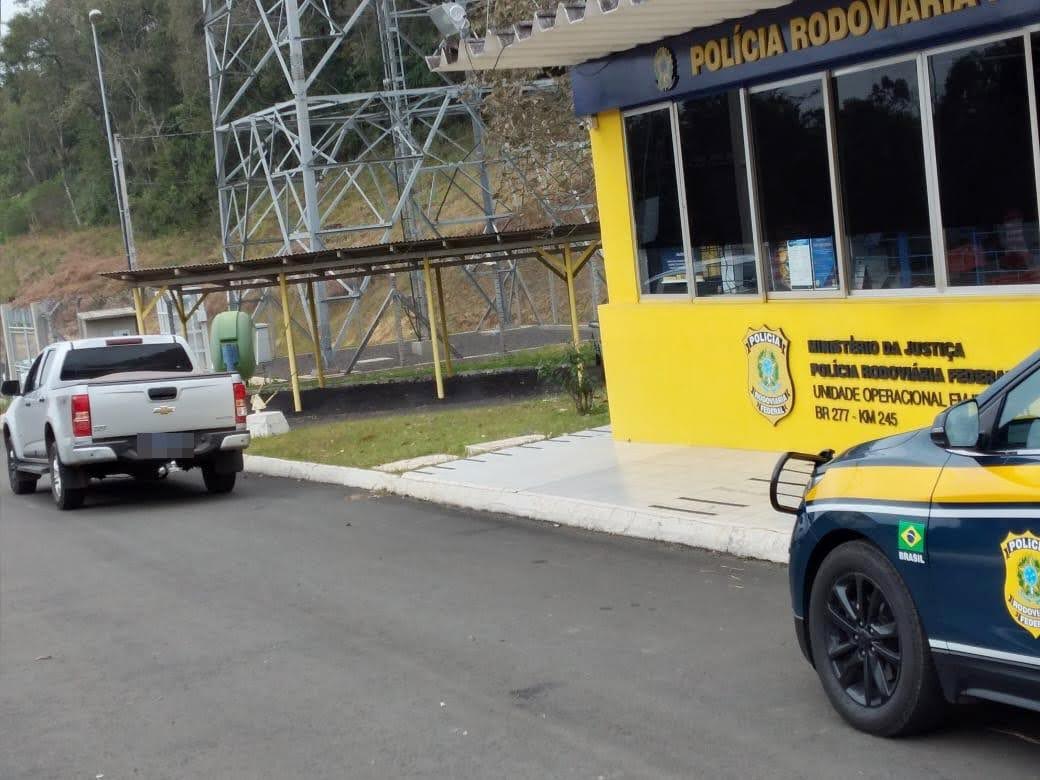 | Caminhonete foi abordada em frente ao posto da PRF na BR-277, em Irati. Foto: PRF/Divulgação |