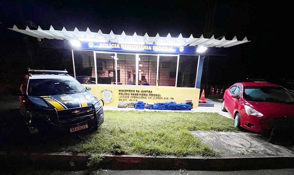 A Polícia Rodoviária Federal (PRF) prendeu um casal que transportava quase 400 quilos de maconha em um veículo Ford Ka, que foi abordado na BR-277, em Guarapuava, na madrugada de hoje, por volta das 2h40.