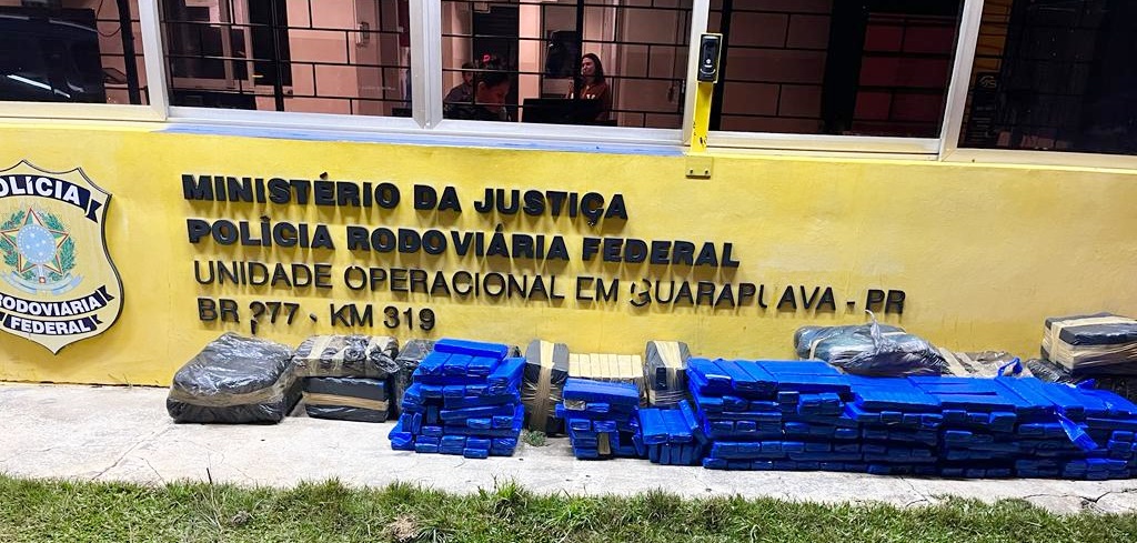 PRF apreendeu 396 quilos e 320 gramas de maconha na BR-277, em Guarapuava. Foto: PRF/Divulgação
