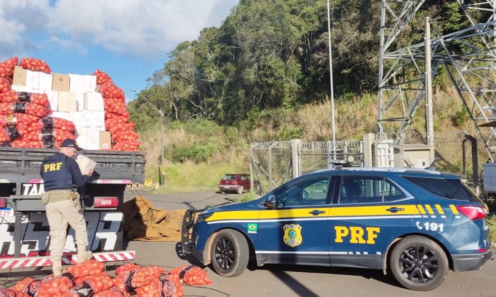 Policiais localizaram 4.500 litros de vinhos argentinos, que estava ocultos sob uma carga de cebolas de origem estrangeira. Homem afirmou que fez uso de anfetamina e não estava respeitando o período de descanso, conforme a PRF