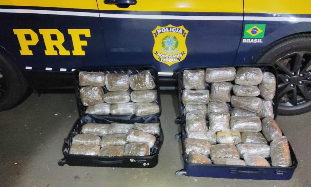 PRF prende passageira de ônibus que estava transportando mais de 23 quilos de skunk