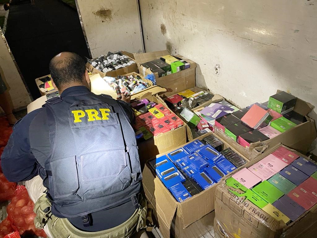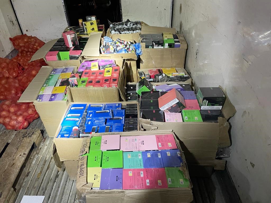 No sábado, os agentes localizaram 12 caixas com cigarros eletrônicos e essências de cigarros em um caminhão, com placas de Colombo/PR, que foi abordado na BR-277, em Irati. O passageiro, de 35 anos, relatou que pegou a carga em Cascavel e faria a entrega em Curitiba. Em troca, ele receberia uma quantia em dinheiro pelo transporte dos produtos. O caminhão foi apreendido e encaminhado para a Receita Federal para posterior responsabilização dos envolvidos.