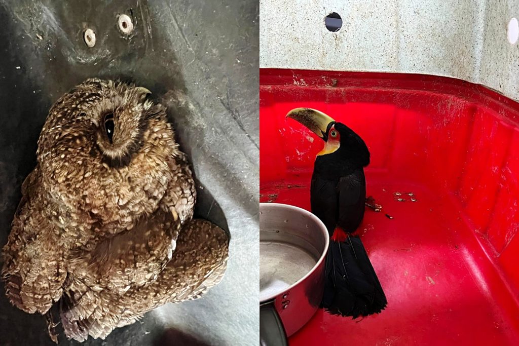Somente na manhã deste domingo, 20, uma coruja e um tucano foram resgatados por policiais do posto de Irati