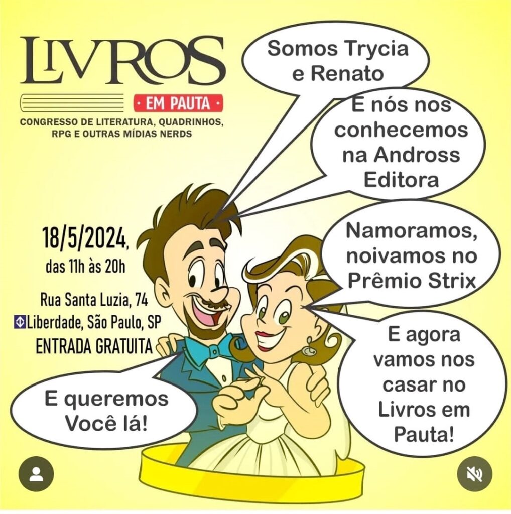 Casamento literário de Trycia Mello e Renato Dutra ocorreu no dia 18 de maio no evento “Livros em Pauta”, em São Paulo. Foto: Arquivo Pessoal