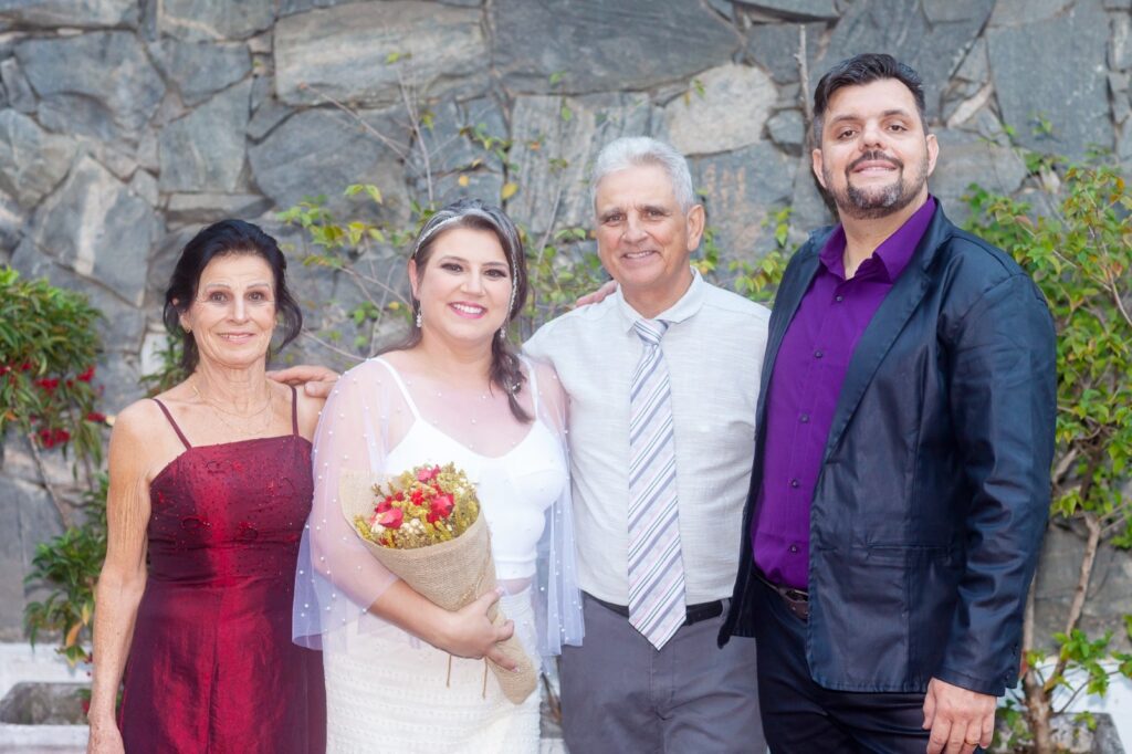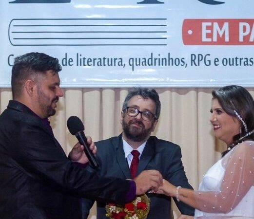 Trycia disse que a celebração buscou fugir do tradicional com a temática da literatura, mas também considerando a realidade e a seriedade do casamento. “Mas não é uma coisa, não é uma fantasia, isso é real, o que tá acontecendo entre nós? Nós estamos construindo no dia a dia uma relação de confiança, de carinho, de cumplicidade, de compreensão, mas, as pessoas não podem pensar que isso é só uma fantasia da editora, porque a editora está completando entre esse ano e o próximo 20 anos. Então é uma coisa muito especial, a gente tem que fazer uma coisa que foge do tradicional, porque não ia envolver nenhum tipo de religião, até mesmo porque hoje a gente tem filosofias de vida, mas não propriamente uma religião. Precisamos fazer com que isso pareça real e que é real? Então a gente fez toda uma cerimônia com celebrante que inclusive foi o editor da nossa editora, a qual a gente trabalha, teve noiva, teve noivo, pais da noiva, os pais do noivo, padrinhos, tapete vermelho, votos, benção e o beijo dos noivos”, explica.
