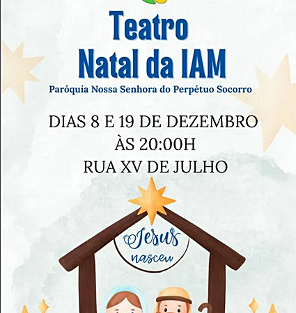 Nos dias 8 e 19 de dezembro acontece a apresentação de Natal da Infância e Adolescência Missionária (IAM) da Paróquia Nossa Senhora do Perpétuo Socorro, de Irati. Neste ano, a apresentação trará uma encenação sobre o nascimento de Jesus, além de um musical. O evento ocorre às 20 horas, na Rua XV de Julho, em frente à Casa de Cultura, integrando a programação natalina de Irati.