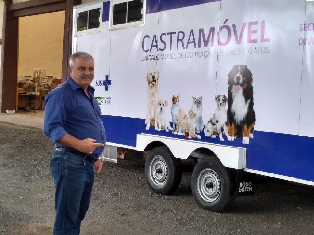 Prefeito Jorge Derbli, ao lado do Castramóvel de Irati. Foto: SECOM