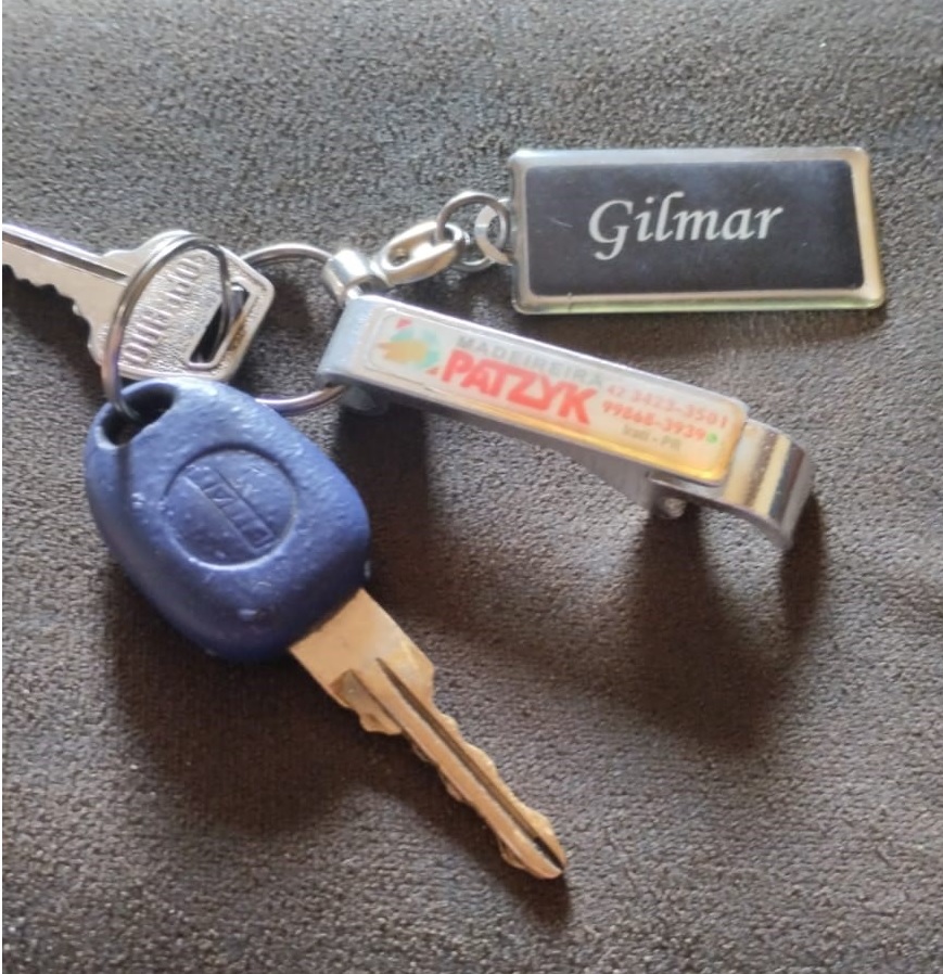 • Foi encontrado próximo ao mercado cavalin, um chaveiro com o nome Gilmar contendo 02 chaves. Contato: (42)9.9951-4785.