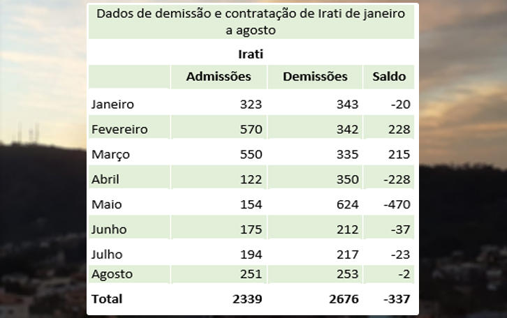 Apenas três municípios tiveram saldo negativo, ou seja, demitiram mais do que empregaram. Em Mallet, o saldo negativo foi de -4, com 51 empregos criados e 55 demissões. Em Rio Azul, foram 37 admissões e 40 demissões, com um saldo negativo de -3. Irati também contou com saldo negativo de -2, com 251 vagas preenchidas e 253 demissões.