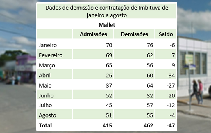 Apenas três municípios tiveram saldo negativo, ou seja, demitiram mais do que empregaram. Em Mallet, o saldo negativo foi de -4, com 51 empregos criados e 55 demissões. Em Rio Azul, foram 37 admissões e 40 demissões, com um saldo negativo de -3. Irati também contou com saldo negativo de -2, com 251 vagas preenchidas e 253 demissões.