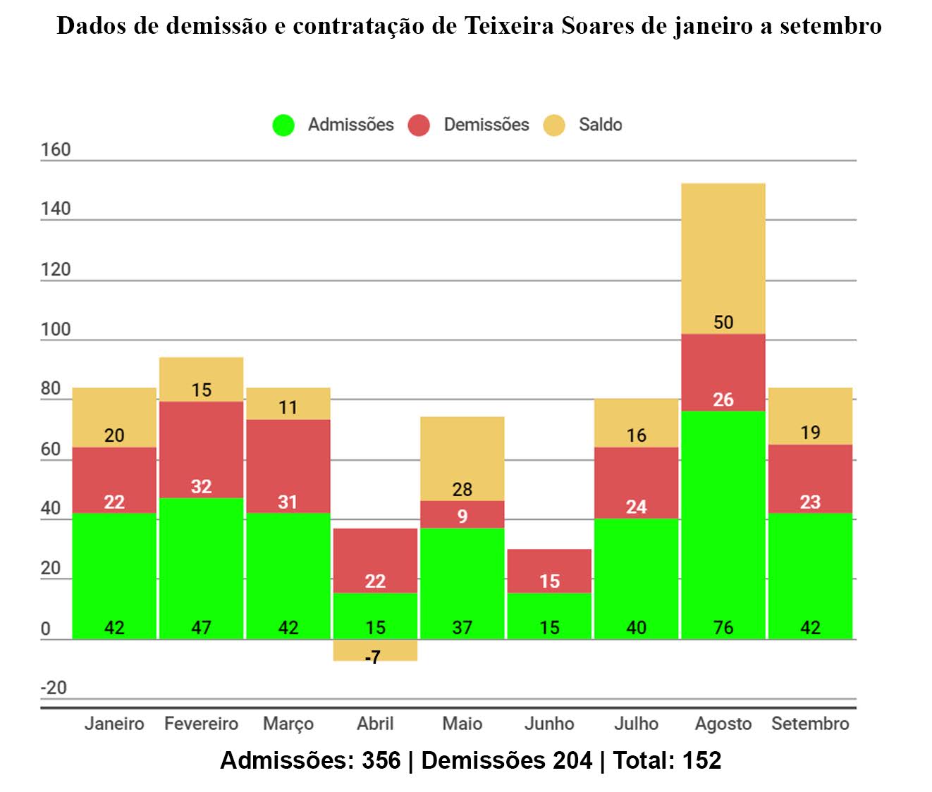 | Teixeira Soares também teve saldo positivo de empregos de janeiro a setembro. Arte: Rádio Najuá |