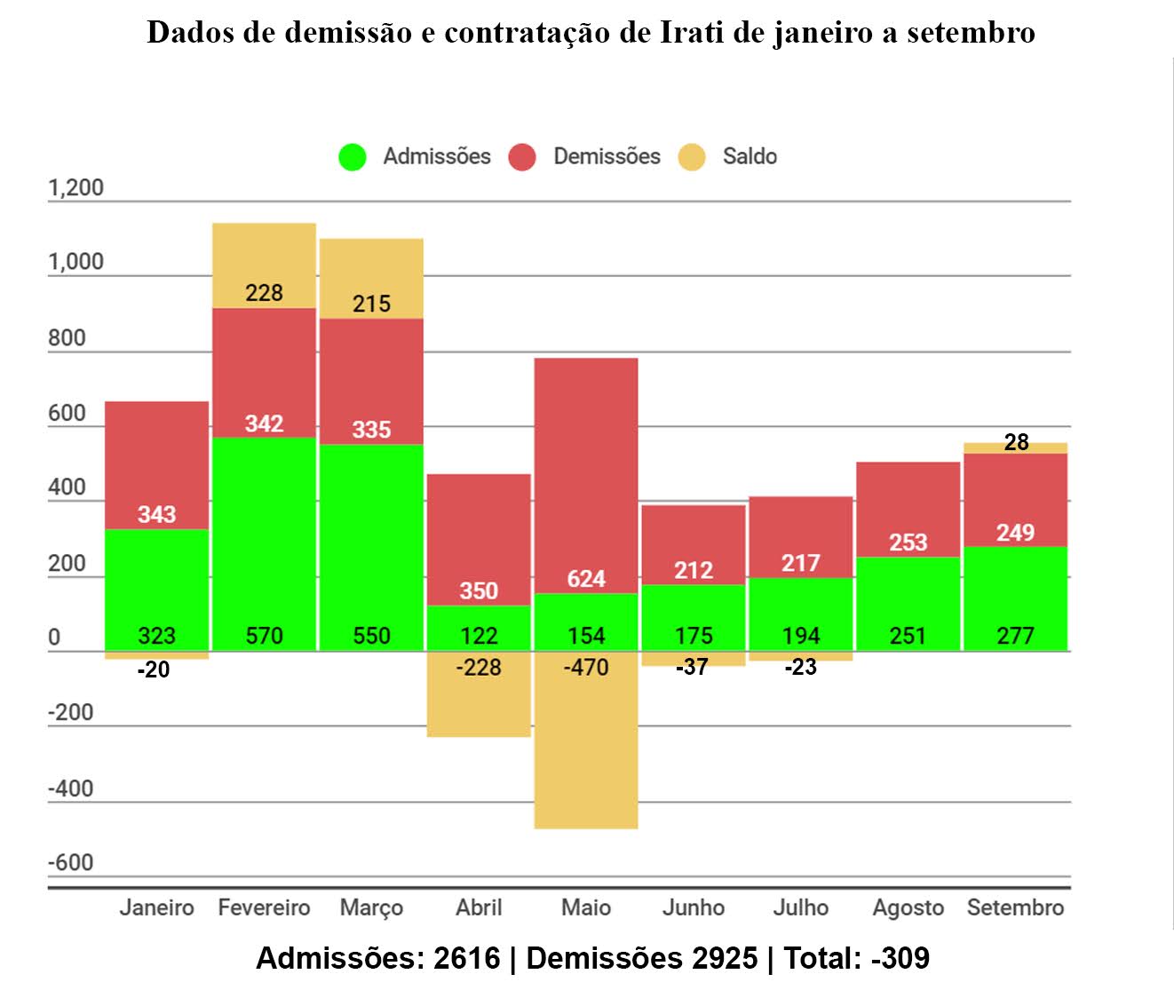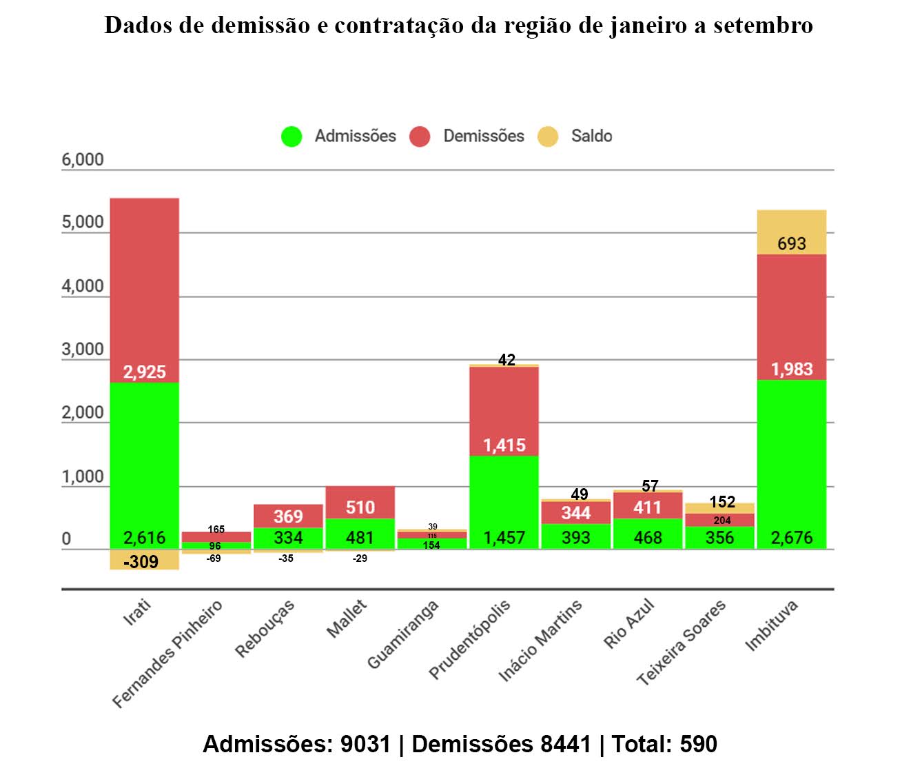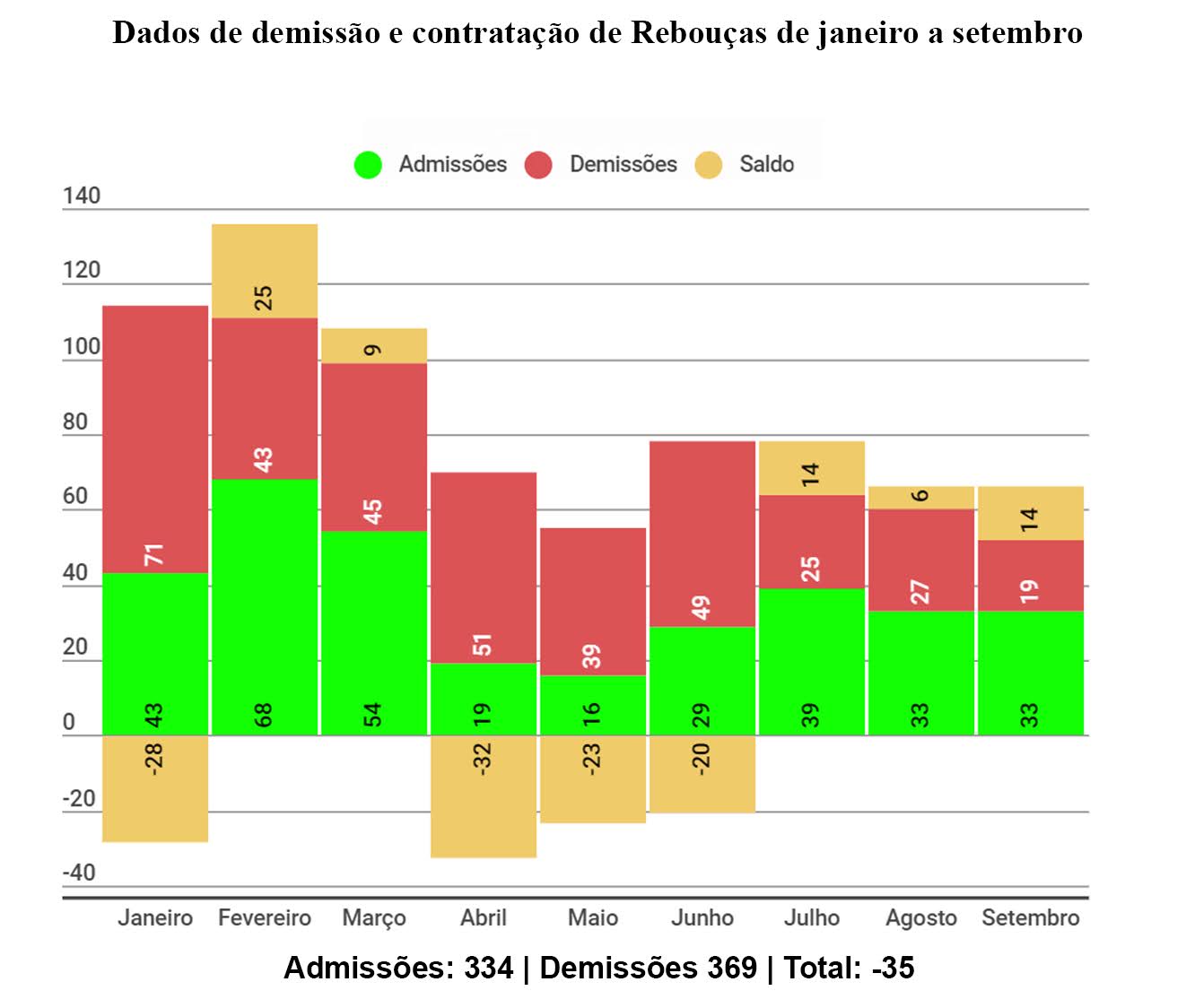 | Em Rebouças foram 334 contratações e 369 demissões de janeiro a setembro. Arte: Rádio Najuá |