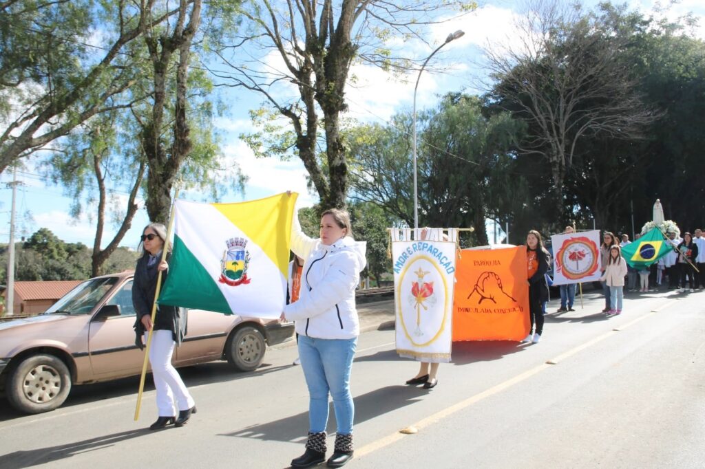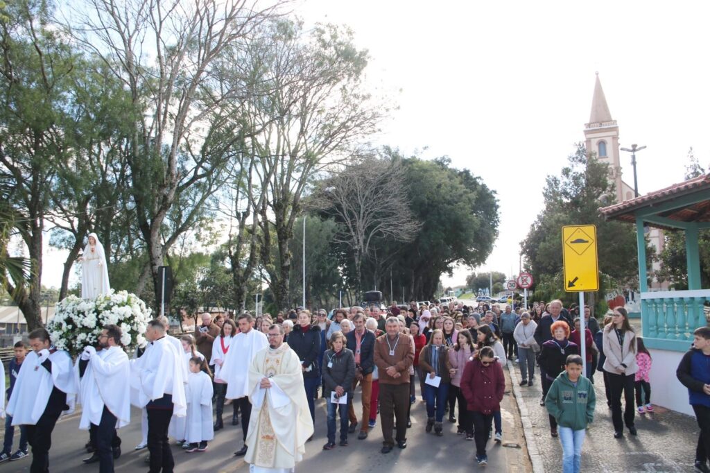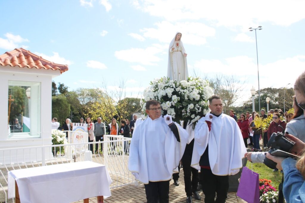 Ela conta que um carro de som da própria Paróquia será utilizado para percorrer as principais ruas da área central após a celebração da missa na Igreja Matriz, no domingo, às 8h30. A procissão parte em direção ao Monumento do Imaculado Coração de Maria, na praça Irmãos Baumel. Em virtude das atividades de aniversário de Teixeira Soares, que também acontecem no fim de semana, a rua principal da cidade em frente à Câmara Municipal estará fechada. “Então a gente vai ali pelo lado direito da igreja pela rua de baixo do colégio das freiras em procissão até o monumento. No monumento é feito novamente a entronização da imagem dentro da capelinha. Nessa procissão será levada a imagem do Imaculado Coração de Maria, que tem todo um protocolo, que vem de Portugal, de onde foi encaminhada a imagem”, explica a integrante da comunidade.