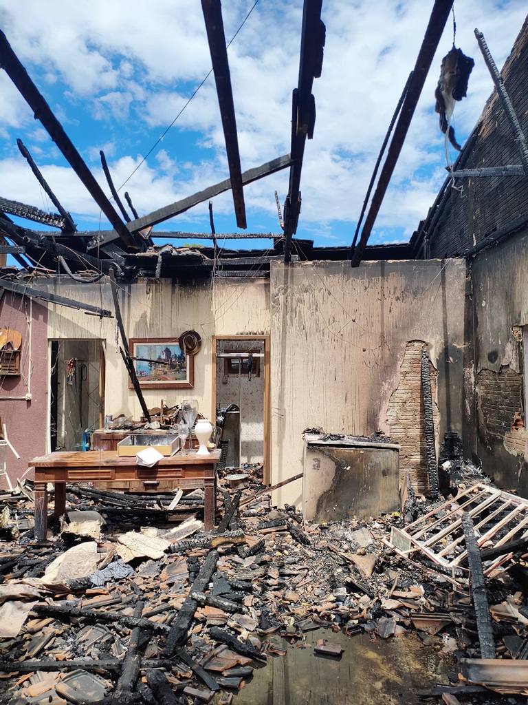 Residência é destruída por incêndio em Guamiranga