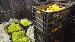 Temperatura nas câmaras frias – Dentro das câmaras frias, a temperatura é de 1 grau. A engenheira de alimentos Daniele Schlumberger conta que esta temperatura é ideal para manter a qualidade dos alimentos que serão vendidos na feira ou que vão para os produtores da Asfrutir e também para o programa Ecotroca.