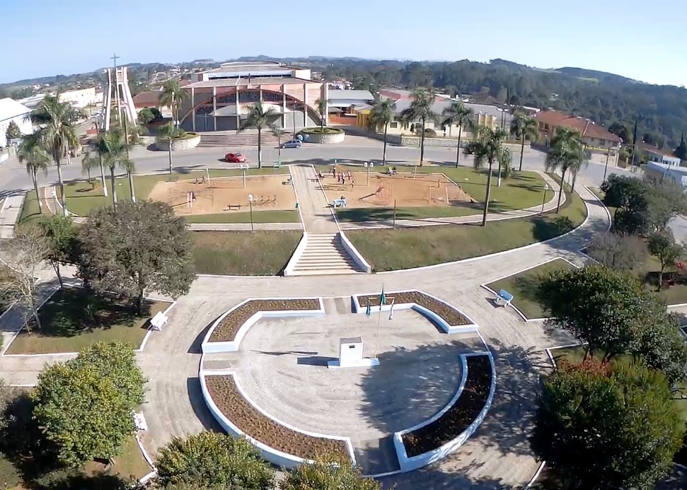 Imagem aérea da Praça Tiradentes, em Rio Azul. Foto: Facebook/Arquivo