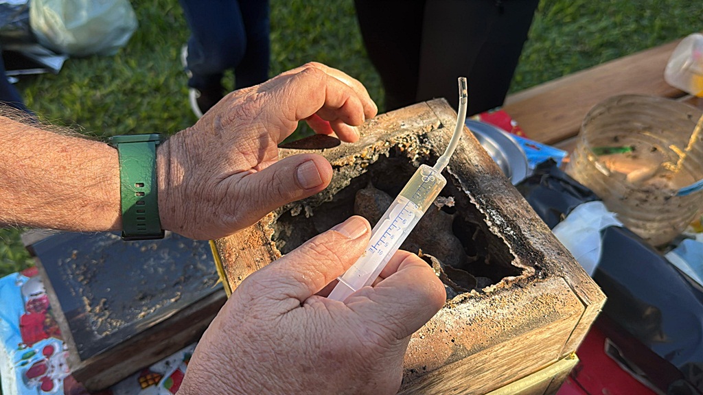 “Quando você consegue cumprir todas as normas para a produção do mel de abelha sem ferrão, o valor agregado é bem maior. Geralmente o pessoal procura outras fontes de renda, como a própria venda, a troca de enxames, que o pessoal procura bastante, para ter em casa para entretenimento, produção de mel, vender mais enxames, polinização, questão ambiental, tem várias alternativas com as quais você pode trabalhar”, frisou.