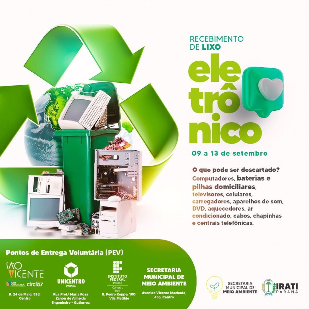 A secretaria de Meio Ambiente de Irati iniciou uma coleta de lixo eletrônico no município nesta segunda-feira. A ação será realizada até sexta-feira, dia 13.
