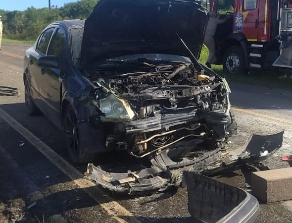 Colisão entre dois carros ocorreu na PR-160, na tarde deste domingo. Acidente deixou mais cinco pessoas feridas