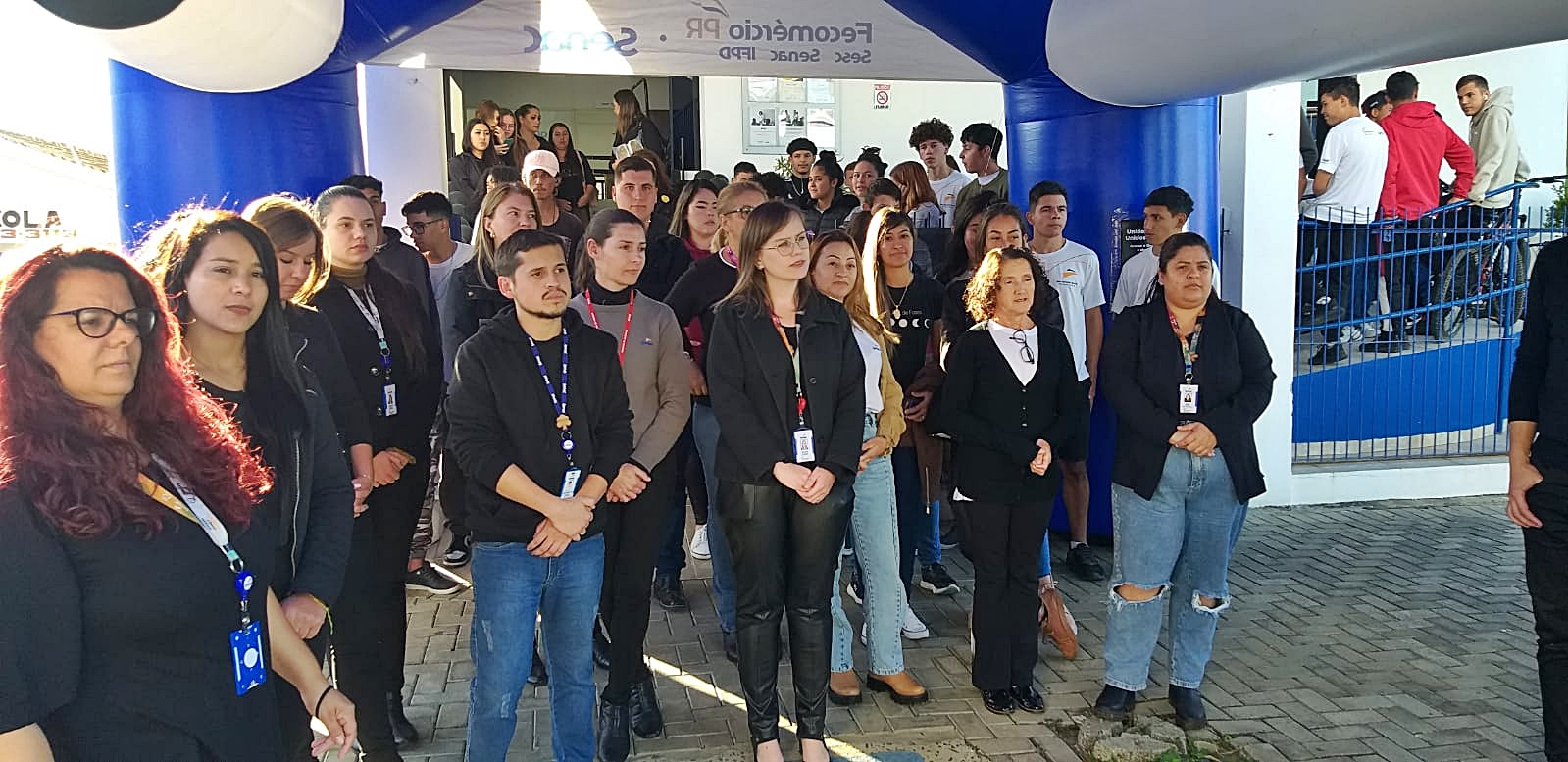 Alunos e funcionários do Senac e representantes da sociedade civil participaram do manifesto na tarde desta terça-feira, 16, em frente à unidade de Irati da instituição. Foto: Paulo Sava