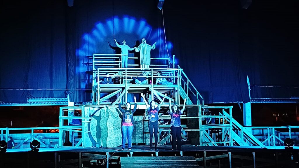 No total, serão utilizados 8 palcos para reviver a história do amor de Deus pela humanidade. A maioria dos participantes, entre diretoria, atores, figurantes e pessoas que atuam nos bastidores, são voluntários. Apesar da maior mobilização ser vista na última semana, o trabalho para que o Teatro aconteça começa logo após o término de cada edição. “Quem conhece todos estes bastidores, sabe que este é um trabalho gigantesco”, destacou.