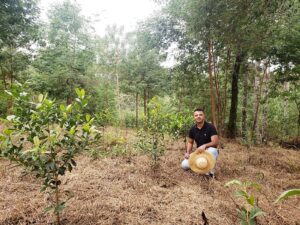 Na foto, o engenheiro agrônomo Weslei aparece na área da propriedade de David Wnuk, em Governador Ribas, destinada para o projeto da enxertia. Foto: Arquivo pessoal