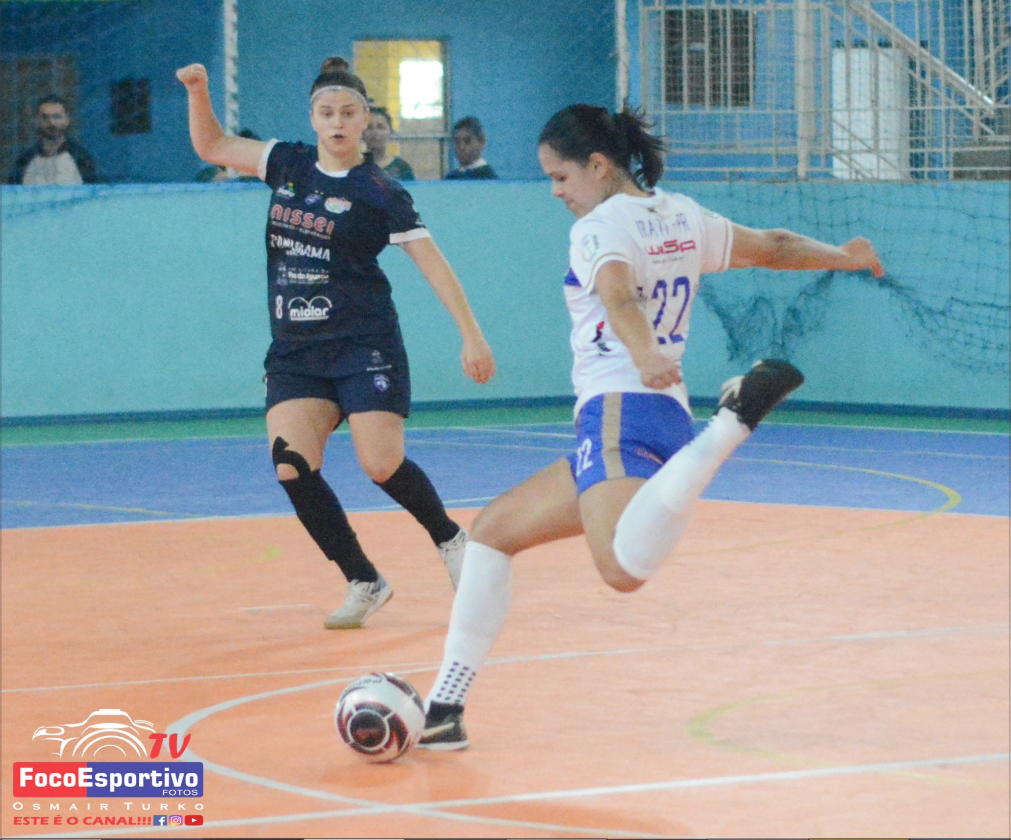 | Jéssica (camisa 22 de Irati) marcou o primeiro gol do time da casa na vitória por 8 a 3 sobre o Foz Cataratas. Foto: Osmair Turko/Foco Esportivo |