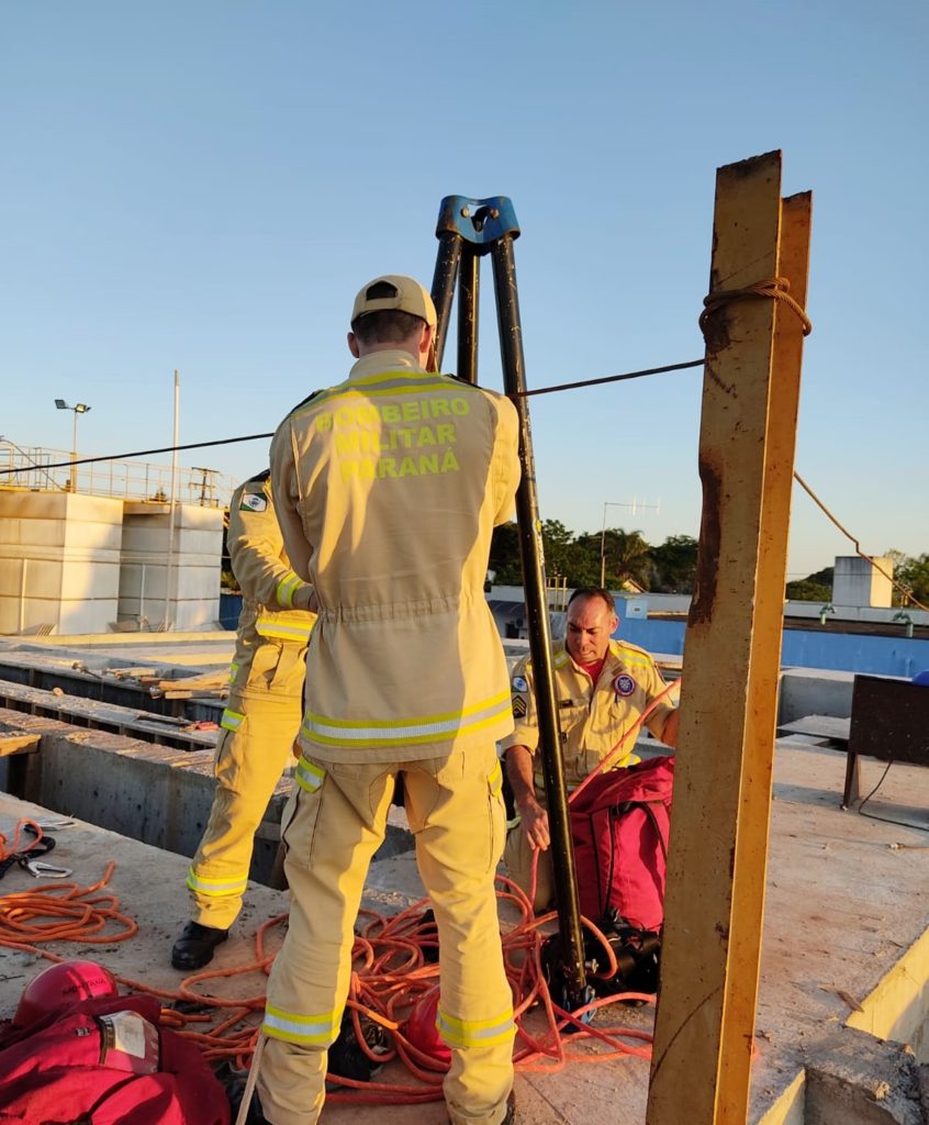 O Corpo de Bombeiros de Irati prestou atendimento a um trabalhador que sofreu uma queda de oito metros em um fosso de uma obra em Imbituva, na tarde de ontem. A situação ocorreu na unidade da Sanepar, na rua Eugênio Lejambre.