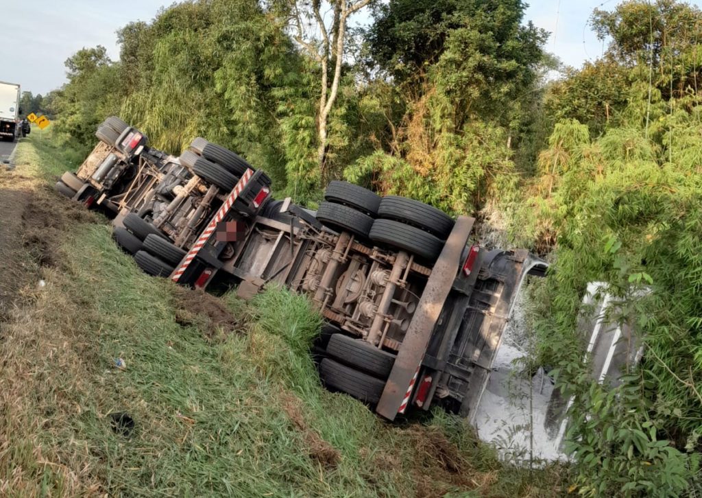 Bombeiros de Irati socorreram os três ocupantes do caminhão, sendo um homem, uma mulher e uma criança de sete meses
