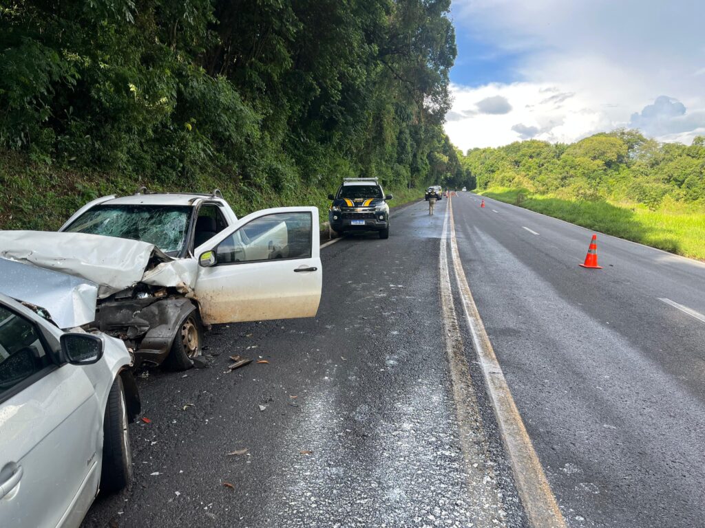 Três pessoas ficaram feridas após uma colisão frontal entre um Fiat Strada e um Voyage na BR-373, em Candói, na tarde de ontem. Segundo informações da Polícia Rodoviária Federal (PRF), os ocupantes da Strada sofreram ferimentos graves e foram encaminhados para o hospital Policlínica de Pato Branco. O motorista do carro tem 47 anos. Já o passageiro possui 44 anos. O condutor do Voyage, de 55 anos, também sofreu lesões graves e foi levado para o hospital Santa Clara de Candói. Os carros envolvidos no acidente foram um Fiat Strada emplacado em Mangueirinha/PR e um Voyage, de Itapejara D’Oeste/PR.