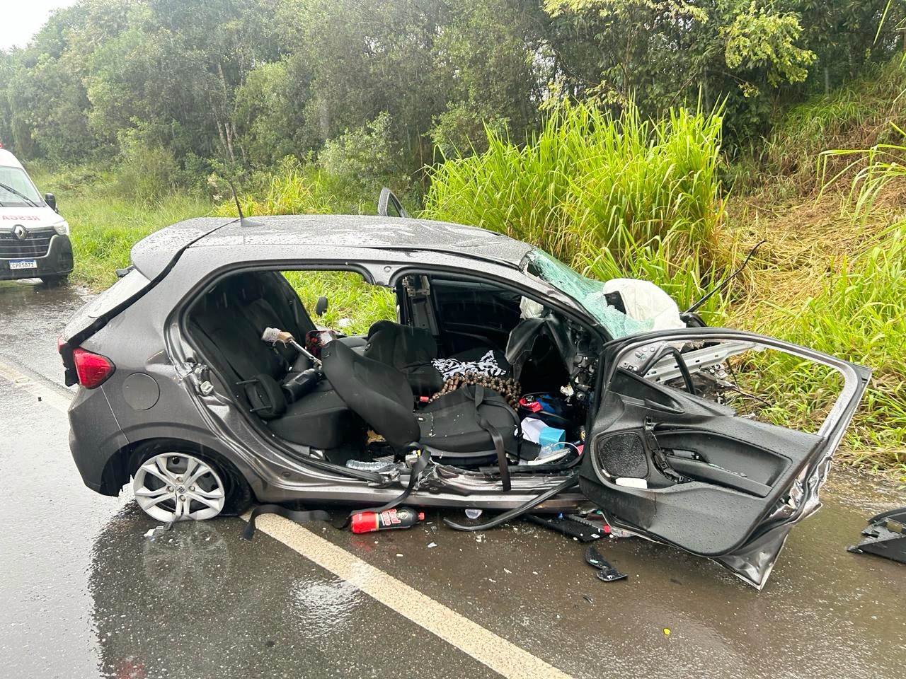Três pessoas morreram e quatro ficaram feridas após uma colisão frontal na BR-277, em Palmeira, na tarde de domingo, por volta das 14h30. Chovia no momento do acidente.