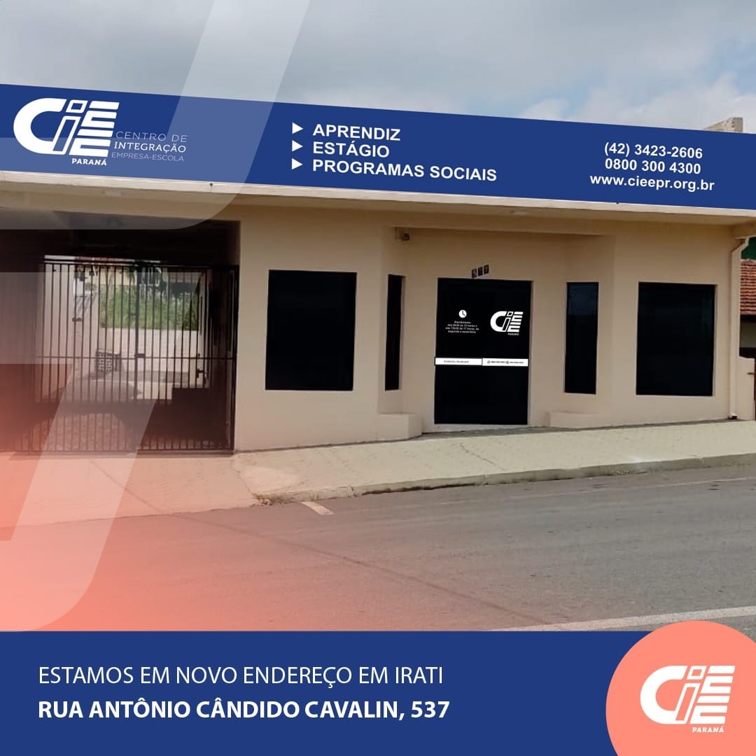 E o CIEE/PR também informa que, no próximo mês (Abril/2021) estará dando início a uma nova turma do Programa Jovem Aprendiz do curso Serviços Administrativos. Portanto, se alguma empresa necessita contratar aprendizes, por gentileza, entrem em contato com o CIEE/PR através dos telefones (42) 3423-2606 ou (42) 9-9998-0038, ou ainda diretamente no escritório que está em novo endereço: Rua Antônio Cavalin, n° 537, em Irati.